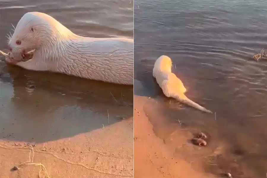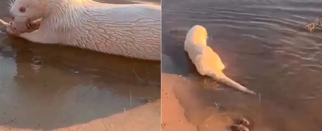 Se trata de un ejemplar de Lontra longicaudis, conocida como lobito de río, nutria neotropical o incluso perro de agua. Esta especie de mustélido habita en ríos, arroyos y lagunas desde México hasta el centro de Argentina. Sin embargo, la condición de albinismo en esta especie es sumamente infrecuente, lo que convierte a este avistamiento en un caso excepcional.
