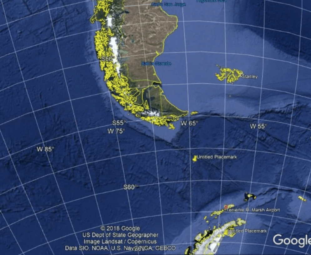 La región en la que desapareció el avión es un vasto océano salvaje de capas de hielo en el borde de América del Sur.