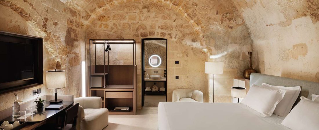 Inaugurado recientemente, el hotel Vetera se abre paso entre las formas irregulares de las cuevas de Matera, fusionando la historia con el diseño contemporáneo. Con solo seis habitaciones, este refugio íntimo fue creado por la familia Napolitano y diseñado por el prestigioso estudio Studio Marco Piva, con un objetivo claro: preservar la autenticidad de las estructuras rupestres mientras se ofrece el máximo confort posible.