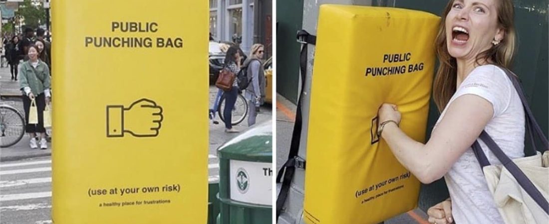 Esta llamativa instalación de sacos de boxeo permiten que las personas liberen su estrés a través de los golpes, en lugar de descargarlo directamente con sus vecinos cuando ya no los soportan más.