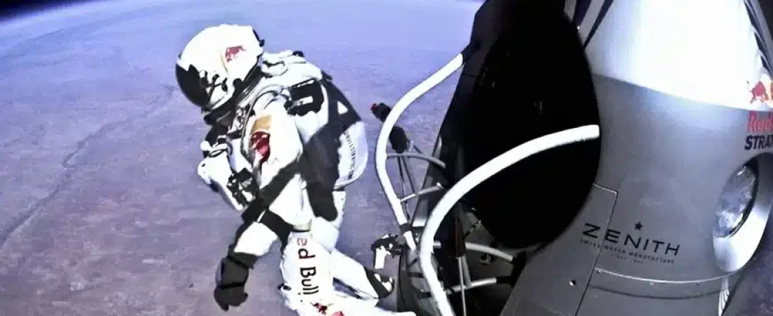 Baumgartner se convirtió en leyenda el 14 de octubre de 2012 al ascender más de 38 kilómetros sobre la superficie terrestre en un globo de helio gigante y lanzarse al vacío en caída libre, alcanzando una velocidad de 1.357 km/h, lo que lo convirtió en el primer ser humano en romper la barrera del sonido en caída libre. Más de ocho millones de personas siguieron la transmisión en vivo por YouTube, lo que también le valió un récord Guinness.