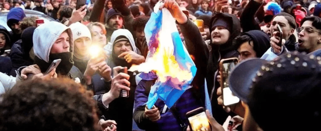 También, durante los incidentes en París, hinchas furiosos quemaron una bandera argentina.