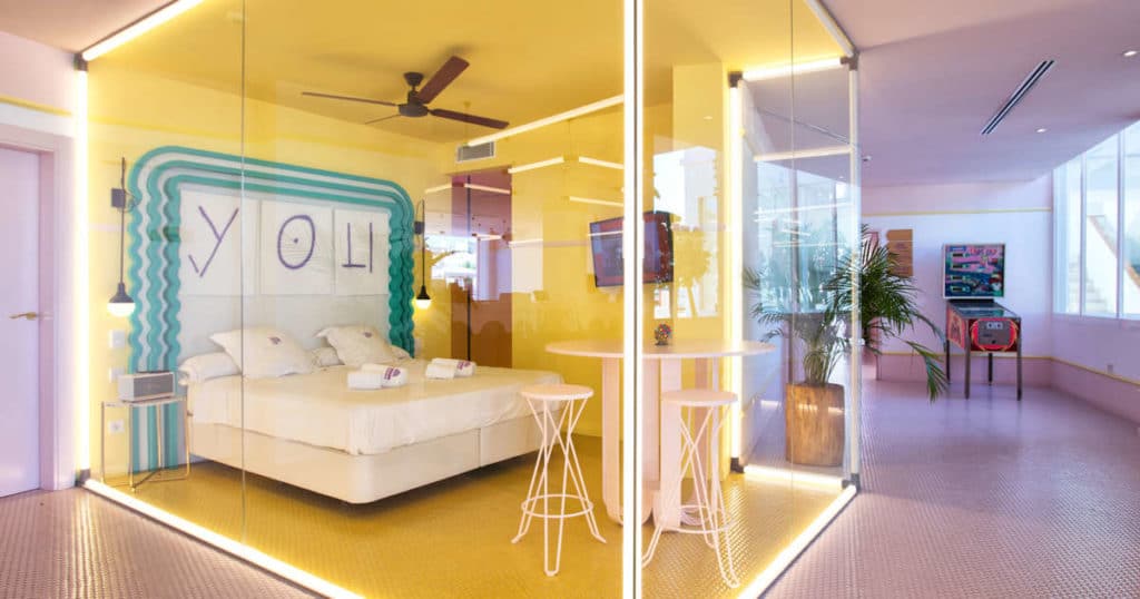 Este lujoso hotel en Ibiza te ofrece una estadía gratis si duermes en una suite de cristal en el vestíbulo del hotel