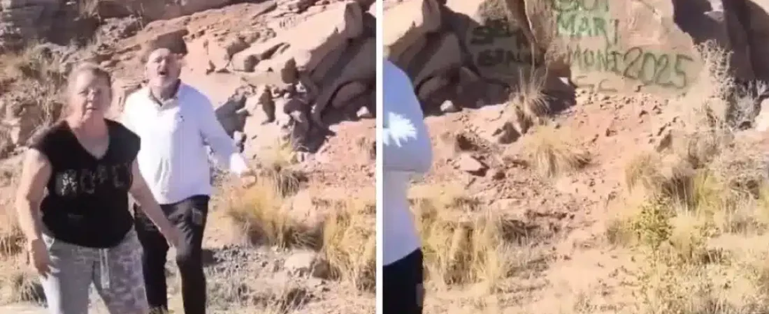 El hecho ocurrió este fin de semana sobre la Ruta Nacional N.º 7, cuando el conductor frenó su vehículo y comenzó a grabar a las personas mientras vandalizaban las piedras. Al notar que estaban siendo filmados, uno de los turistas intentó justificarse con una frase insólita: “No sabíamos que no se podía”.