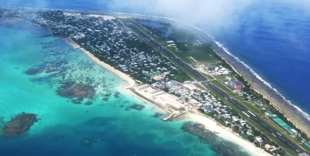 Conformado por tres islas coralinas y seis atolones, Tuvalu tiene un punto máximo de apenas cinco metros sobre el nivel del mar. Según estimaciones científicas, el país podría quedar completamente sumergido antes de que termine este siglo si no se logra frenar el calentamiento global.