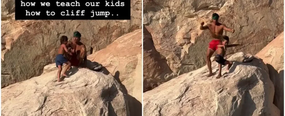 En las imágenes, que ya superaron los 4 millones de reproducciones, se ve cómo Gee anima a su hijo Cali a saltar desde un acantilado en el lago Powell, un popular destino turístico. Sin embargo, al ver que el niño no se decidía, el padre lo toma en brazos y lo lanza él mismo al agua.