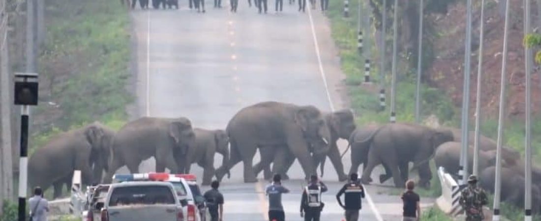 Los avistamientos de animales aprovechando la cuarentena obligatoria debido al Covid-19 se han vuelto virales en las redes sociales: ahora una manada de elefantes han sido captados cruzando en una calle de la provincia de Chachoengsao, al este de Bangkok en Tailandia.